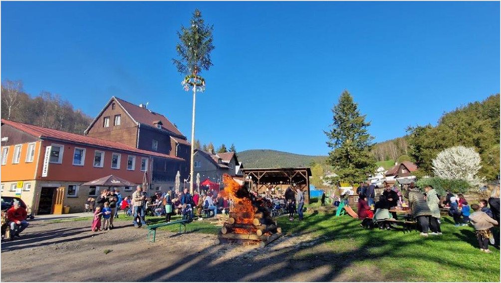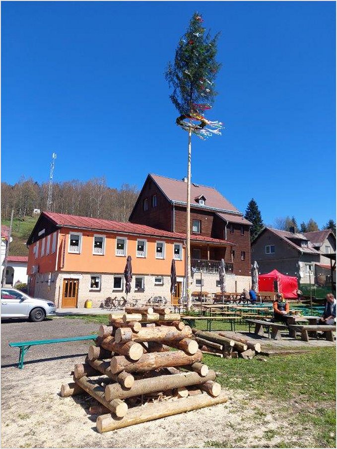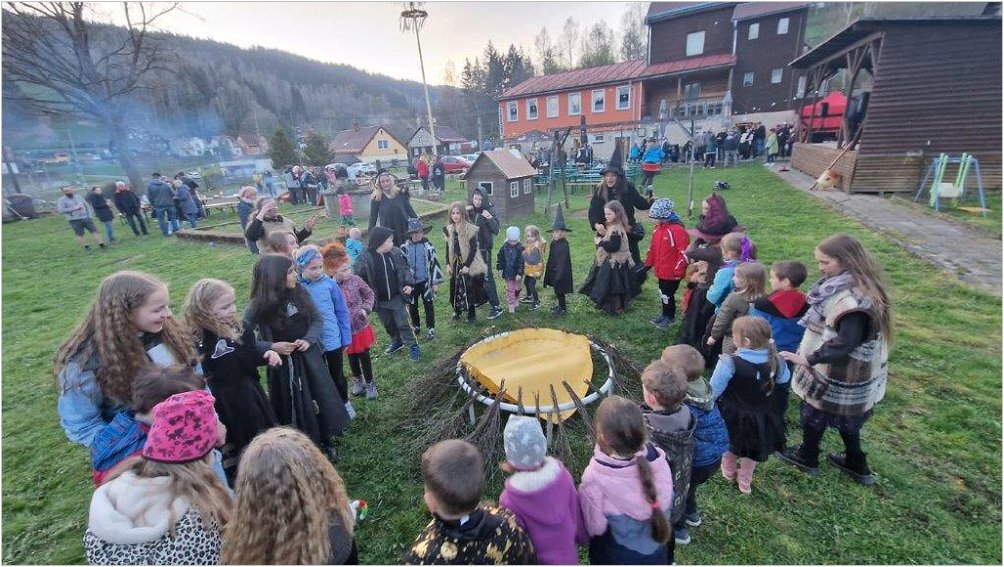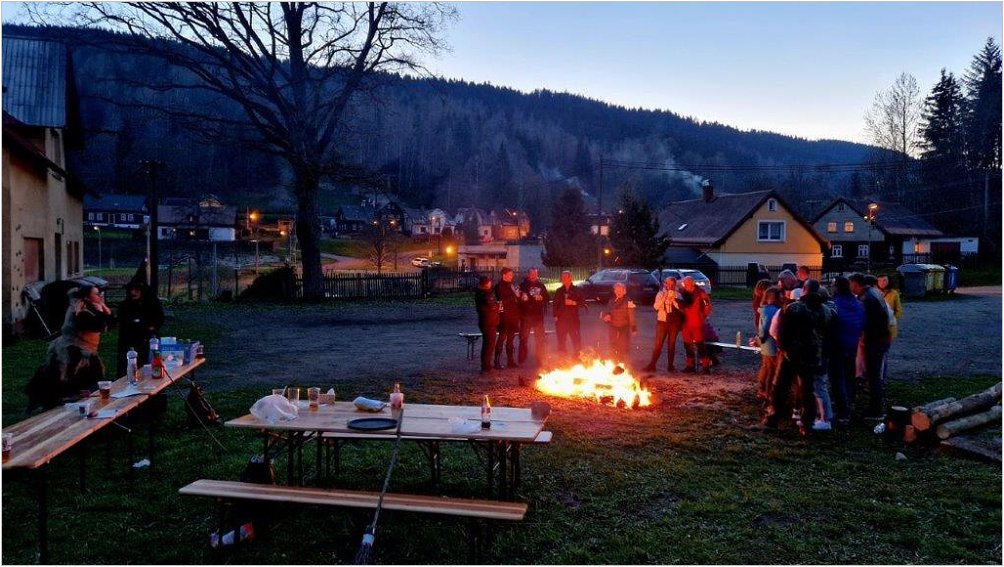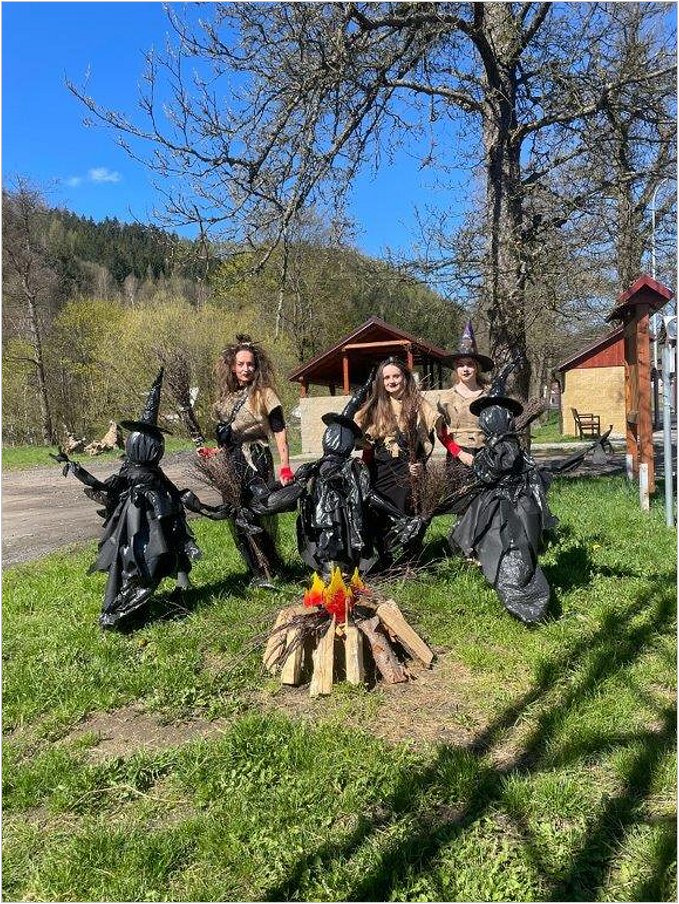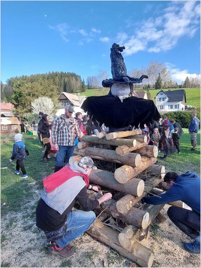 Stavění Májky a příprava na tajemnou noc, kdy je zapotřebí zapálit oheň a chránit se před mocí čarodějnic.