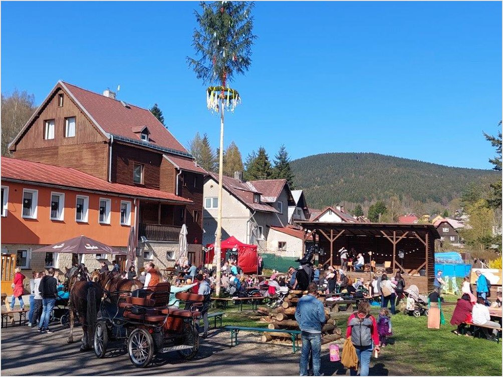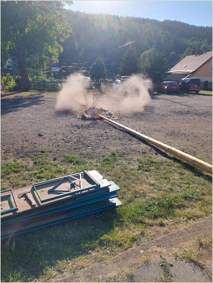 Zlá síla zahnána a konec symbolu zla. Průvod v čele s kočárem, soutěže, muzika, zábava, večerní lampionový průvod, spousty dalšího veselí a dobrovolníci, kteří do rána drželi stráž a Májku hlídali.