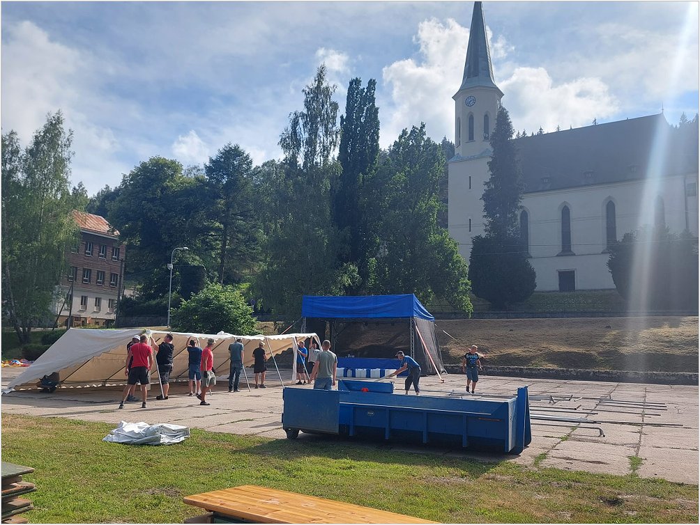 Slavnost je vždy zahájena bohoslužbou pana Pátera Petra Fořta v místním kostele Nejsvětějšího Srdce Páně ve Stříbrné.